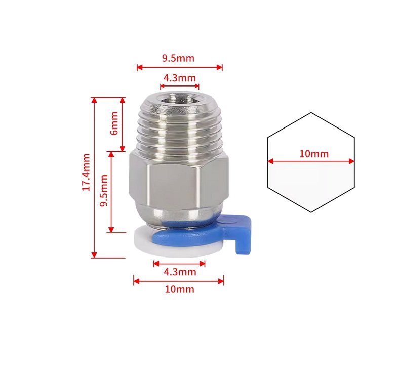 Фітинг JP4-01 нікельований, різьба М10, прохідний отвір – призначений для надійного з’єднання тефлонової (PTFE) трубки діаметром 4 мм з компонентами систем подачі філамента або пневматики. Має прохідний отвір, трубка проходить наскрізь та нікельоване покриття, що забезпечує підвищену міцність і корозійну стійкість. Оптимальний вибір для Bowden-екструдера, модернізації 3D-принтера або промислових пневмосистем.
