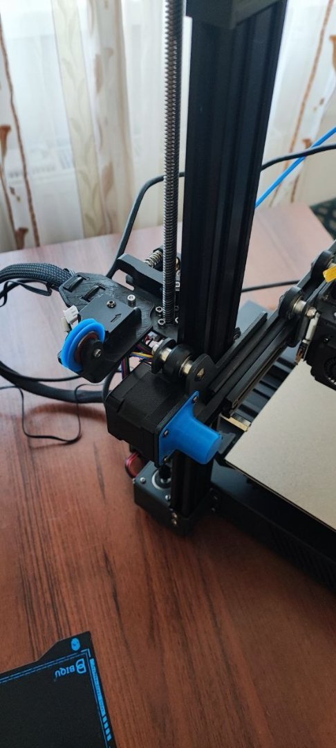 -Встановлено смарт датчик філаменту (вартість на алі більш як 800 грн), який дає змогу відслідкувати не тільки закінчення філаменту, а і припинення подачі в результаті застрягання (працює відмінно). Зараз принтер стає в випадку застрягання філаменту на паузу і адекватно продовжує друк після відновленн подачі. Звичайний датчик також в комплекті, встановлений на принтер, але підключений має бути лише один, і в прошивці дисплея вибір датчика.