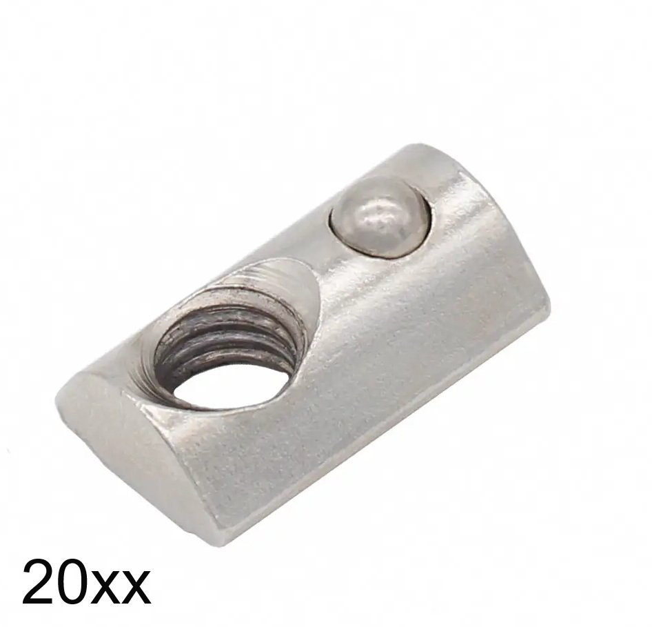 Сухар пазовий із кульковим фіксатором для профіля серії 20ХХ призначений для використання з конструкційними алюмінієвими профілями зі стандартним пазом. Особливістю цього виду сухарів є наявність підпружиненої кульки, яка притискає сухар до внутрішньої стінки паза, що дає змогу зафіксувати сухар у пазі, що істотно спрощує монтаж, зокрема у вертикальних і похилих конструкціях. Встановлення сухаря виконується як із площини профілю, так і з торцевої частини. Ідеально підходить для складання 3D-принтерів, фреймів, CNC верстатів, лазерних граверів та інших конструкцій на базі профілю 20 серії.