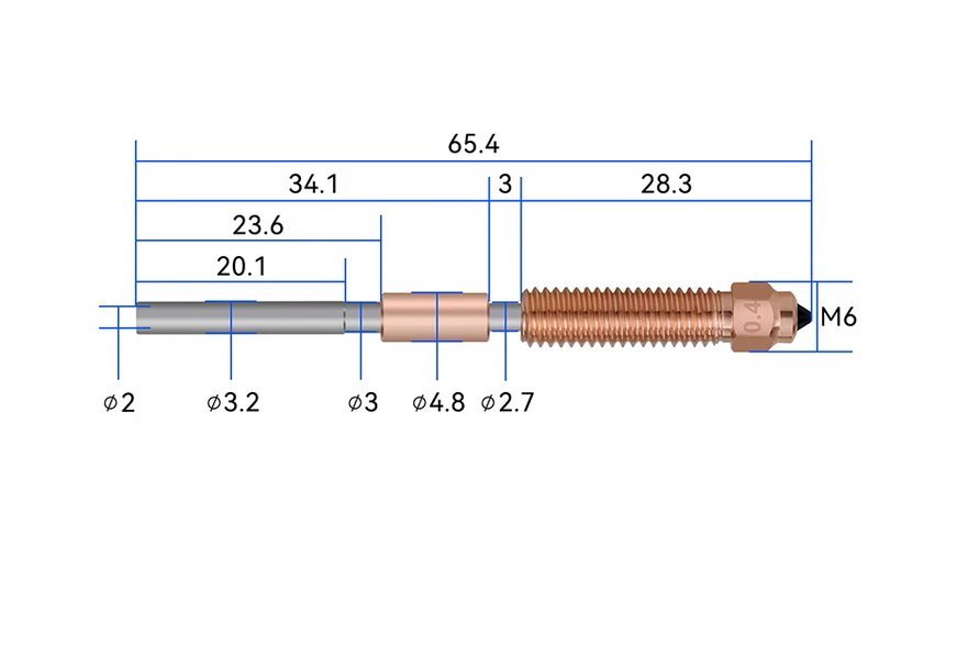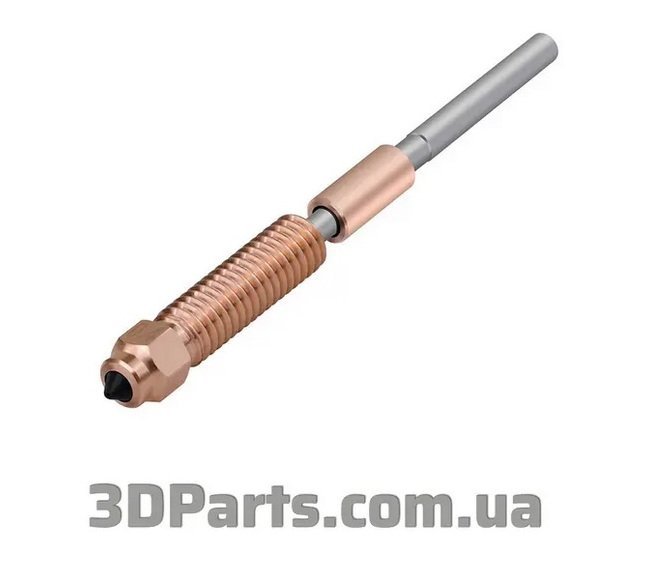 Основа сопла - мідний сплав з високою теплопровідністю (330 Вт/м-К) для забезпечення рівномірного нагрівання. Саме сопло виготовлено з загартованої сталі з високою зносостійкістю.