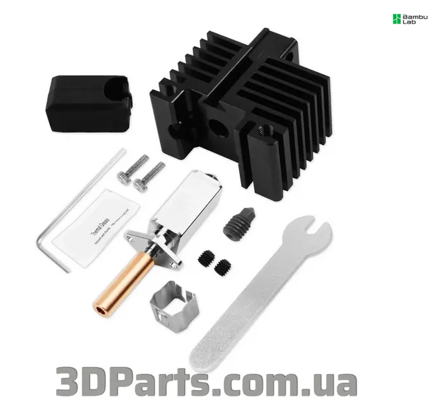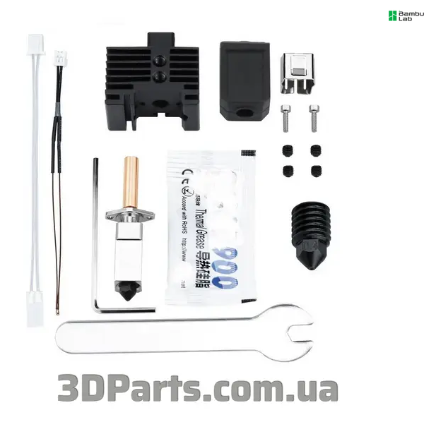 Хотенд до Bambu Lab TZ X1/P1-2.0 варіант 1 - сталеве тугоплавке сопла 0,4мм, скоба, силіконовий носок, аксесуари - 550грн